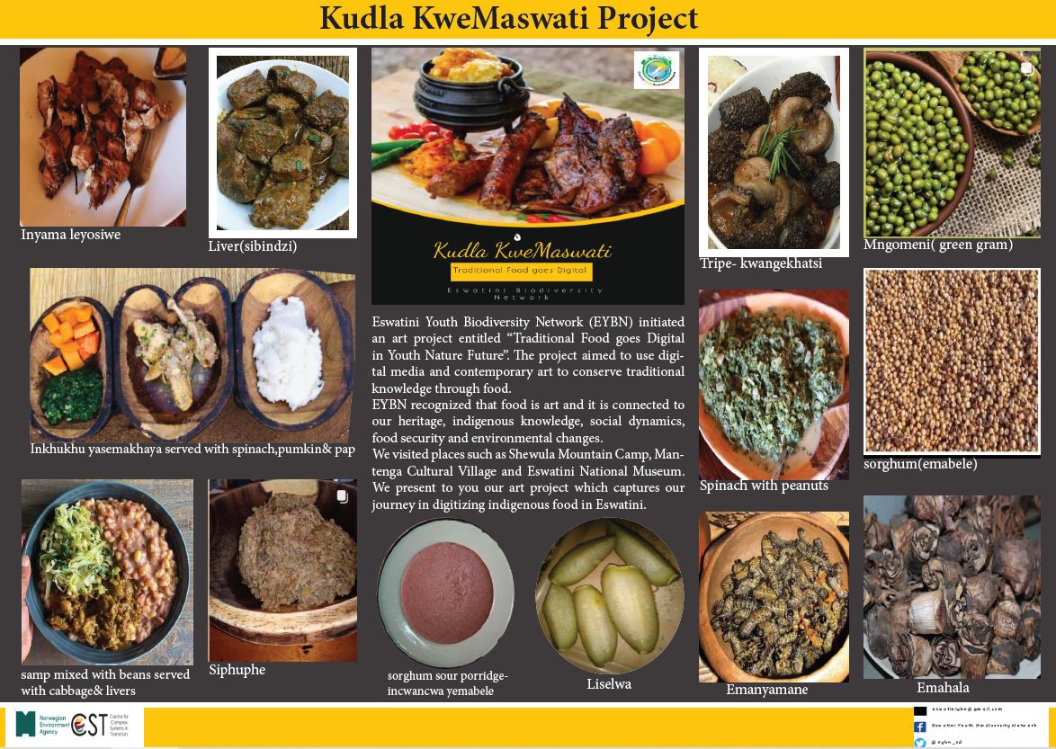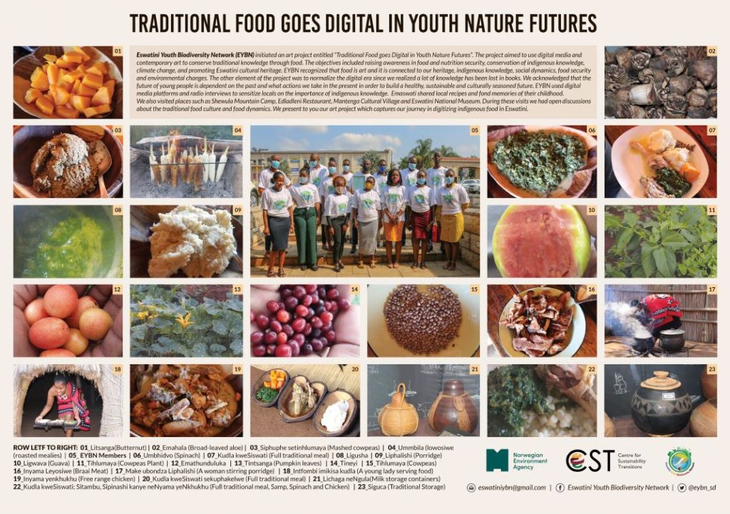 The Eswatini Youth Biodiversity Network (EYBN) initiated this project that uses digital media and contemporary art to conserve traditional knowledge through food. EYBN recognized that food is art, and connects us to heritage, indigenous knowledge, and environmental change.