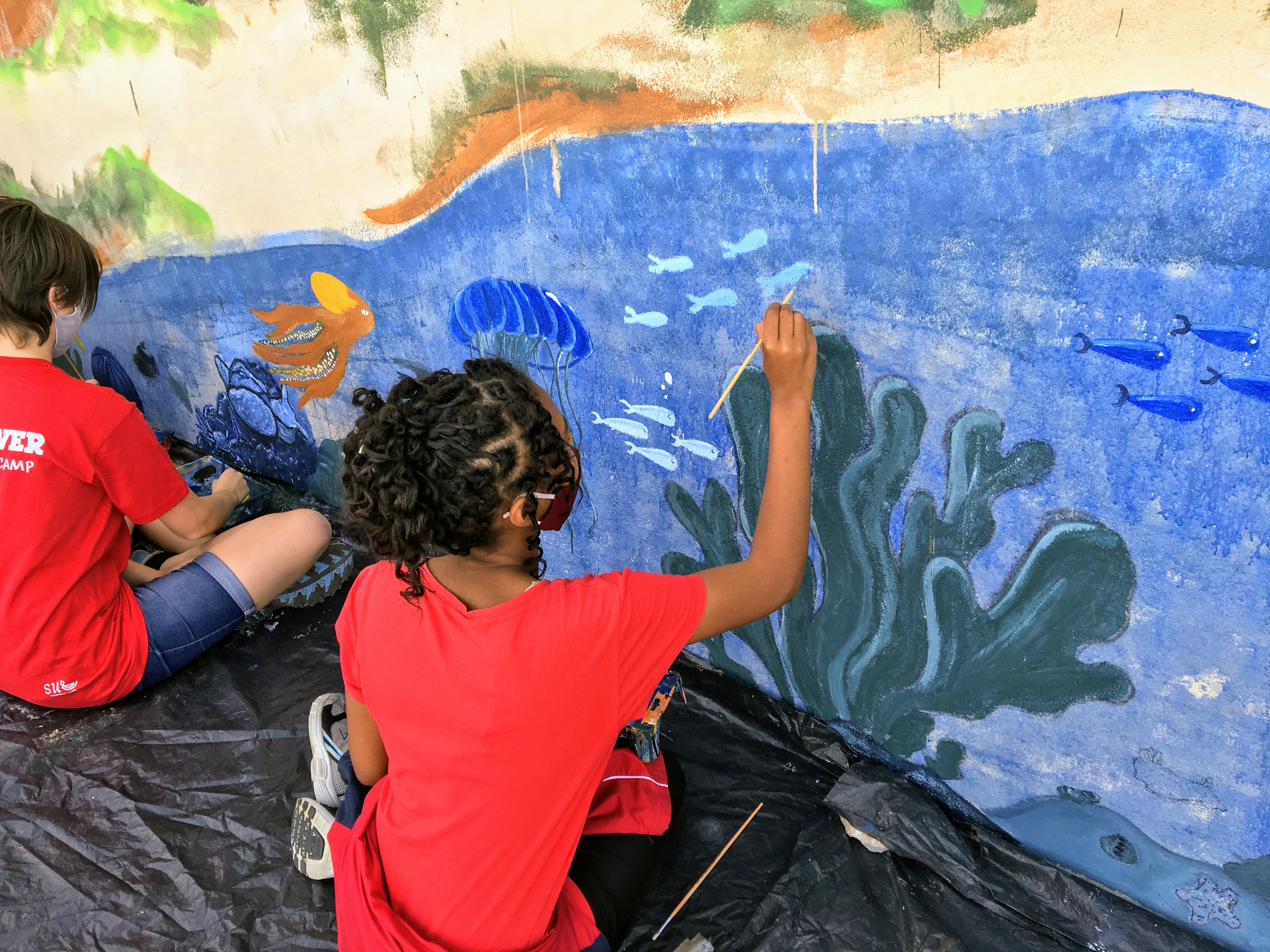 With the help of Care Creative, a sea level rise mural is being painted on the walls of a law enforcement building in Fish Hoek, Cape Town, South Africa.