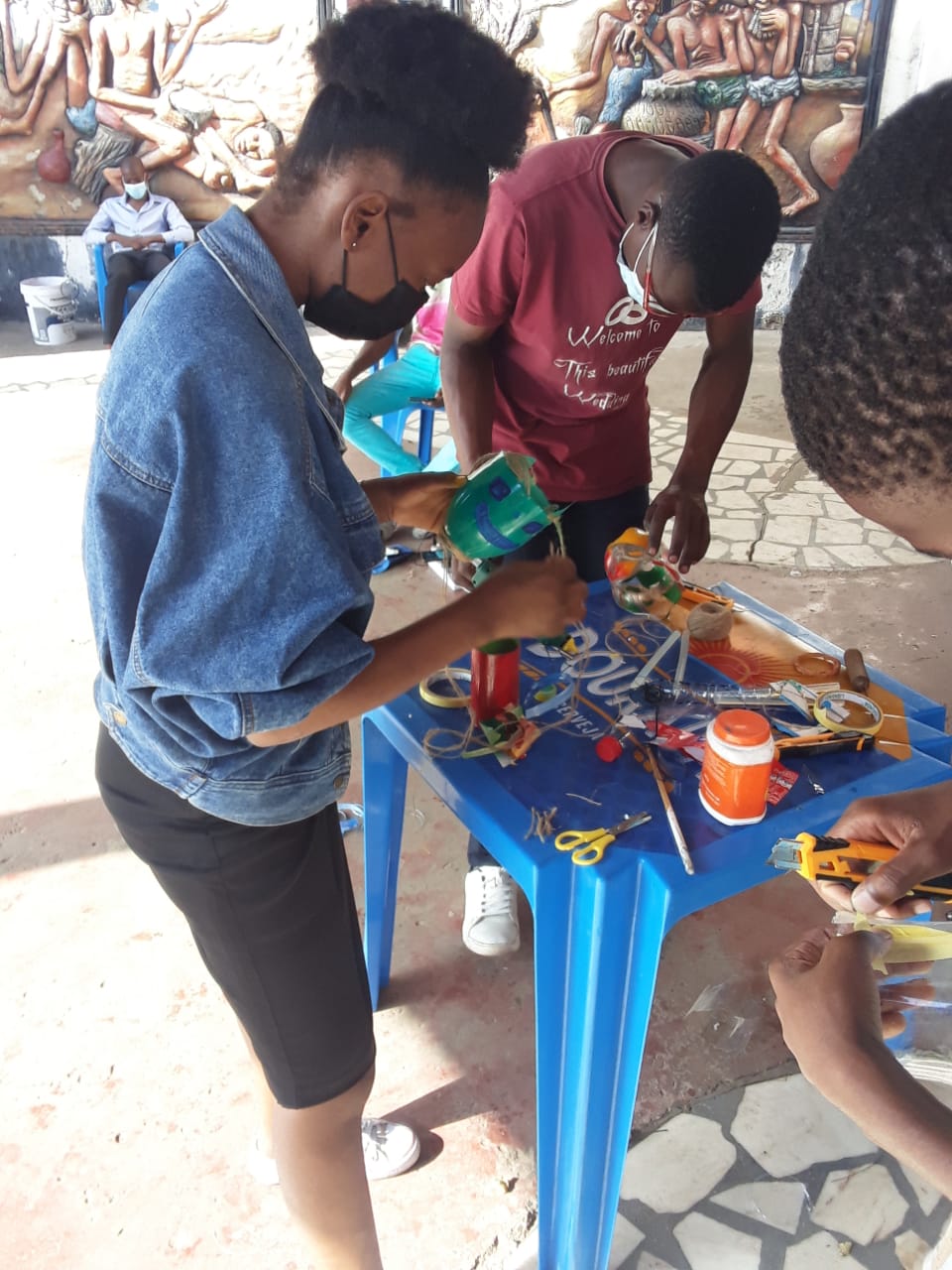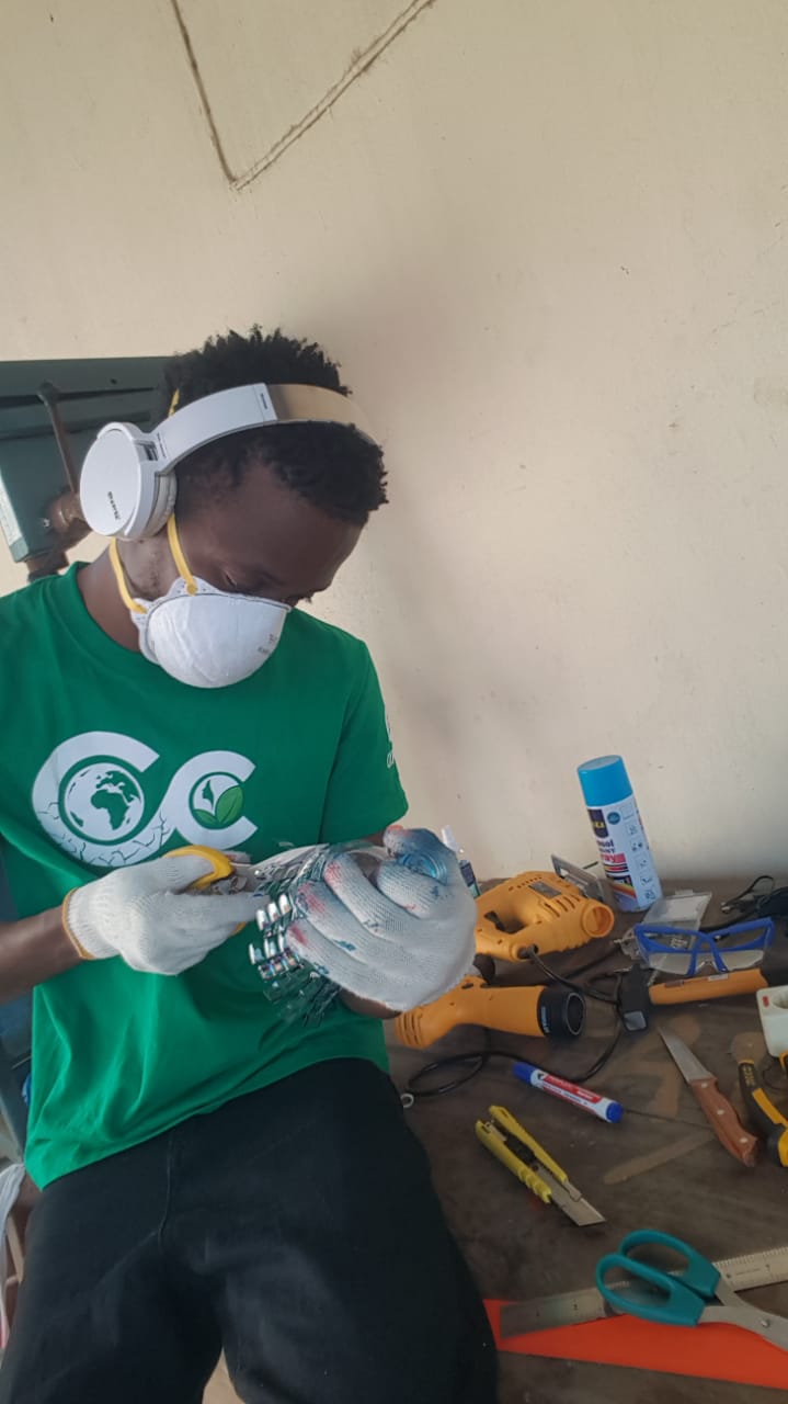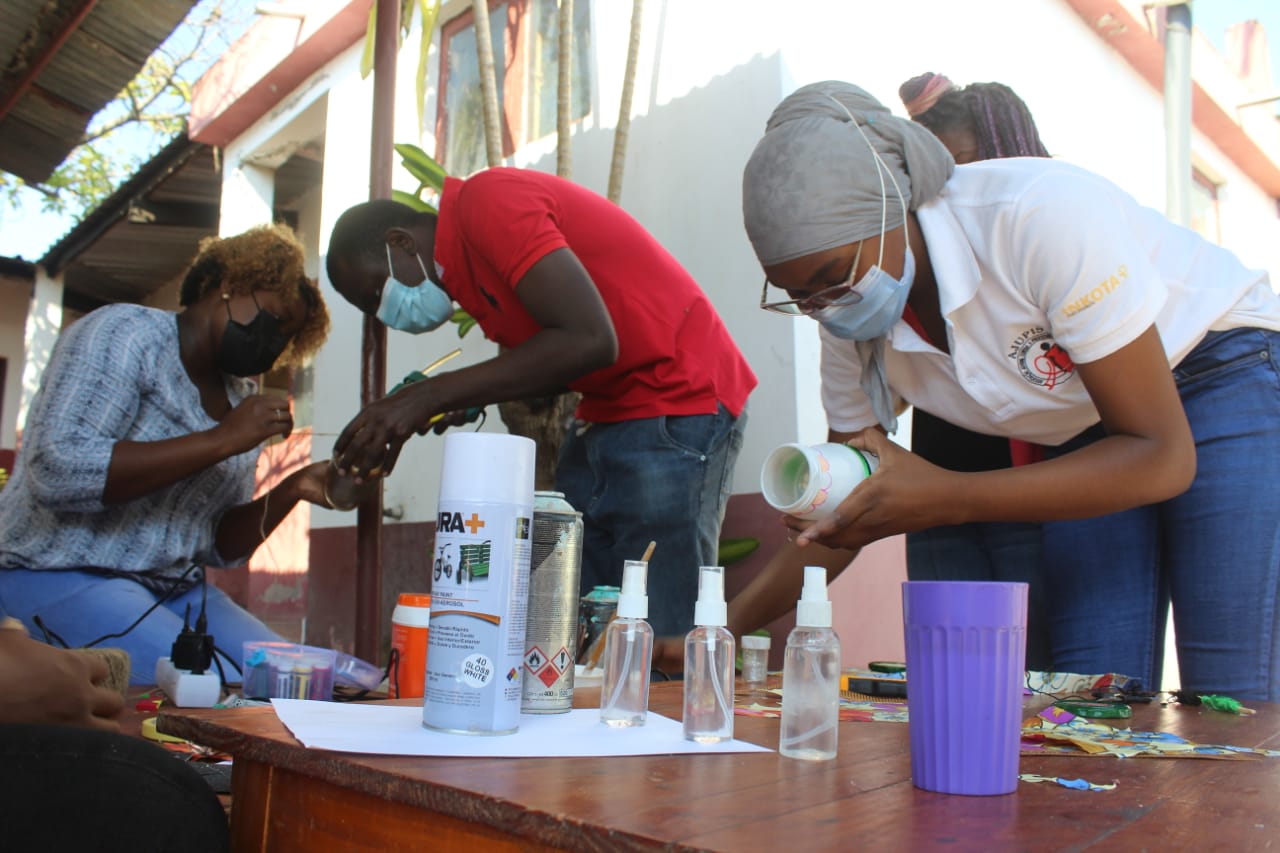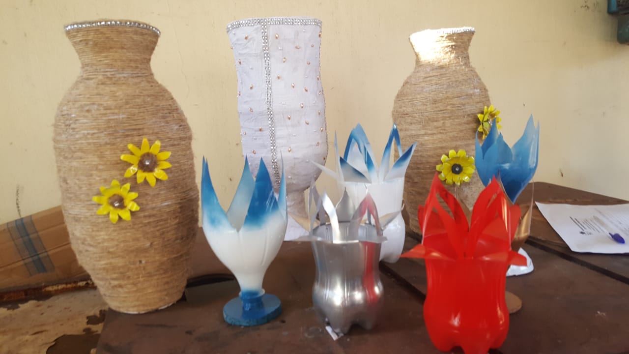 The project aims to reduce plastic pollution in Maputo neighbourhoods by collecting plastic bottles that have been discarded, and transforming them into art, such as vases, chairs, and other items.